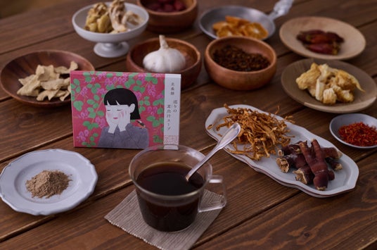 厳選した鹿角霊芝、冬虫夏草、メシマコブ、山伏茸など貴重とされる茸をはじめとした13種類のうまみを凝縮したキノコ風味が豊かな薬膳粉末スープ。ニンニク、ショウガ、ベニバナなど千年以上の歴史を持つ素材も加えました。1食ずつ包装されたスープは持ち歩きに便利。動物由来の素材不使用。