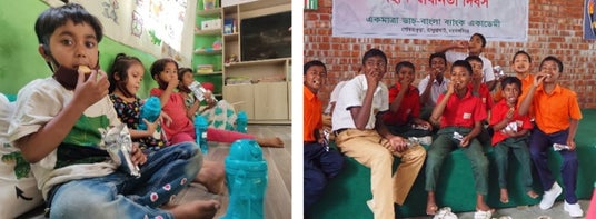 栄養失調の危機に面しているバングラデシュの子どもたちに、栄養豊富なユーグレナクッキーを届ける取り組みを行っています。これまで、累計で1,956万食以上のユーグレナクッキーを配布し(2024年12月末時点)、バングラデシュの子どもたちの健康に寄与してまいりました。