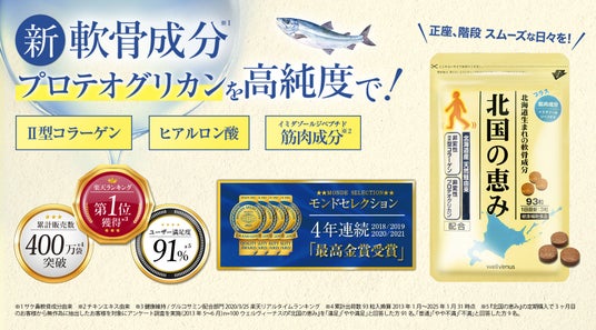 ジェイフロンティア株式会社(本社:東京都渋谷区、代表取締役社長執行役員:中村篤弘、以下「当社」)のグループ会社の株式会社ウェルヴィーナス(本社:東京都渋谷区、代表取締役社長:橋本真吾、以下ウェルヴィーナス社)は、ウェルヴィーナス社が販売する製品「北国の恵み」の累計販売数が、2013年1月の発売以来400万袋を突破したことをお知らせいたします。