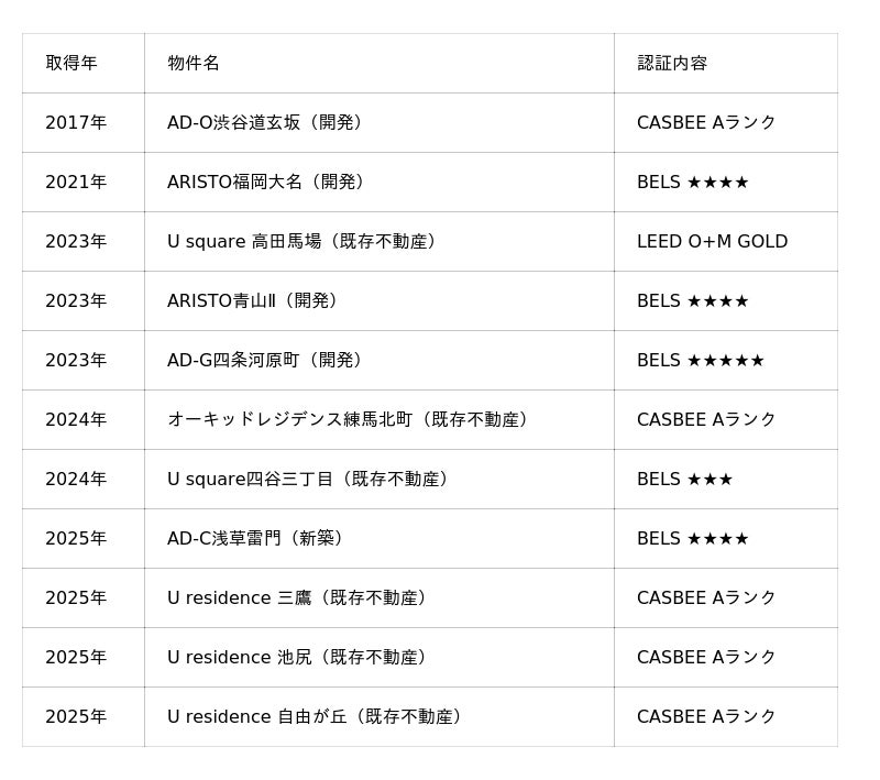 今後も、当社グループが保有・開発する不動産に対して環境ニーズに沿った商品企画を施し、環境認証を取得すること等により、環境問題に対処しながら優良な収益不動産の提供に努めます。