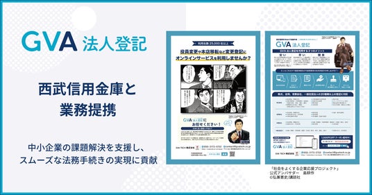 リーガルテックサービスの開発・運営を行うGVA TECH株式会社(本社:東京都渋谷区、代表取締役:山本 俊)が運営する法人登記クラウド「GVA 法人登記」は、信用金庫大手の西武信用金庫(本店:東京都中野区、理事長:高橋 一朗)と業務提携したことをお知らせします。