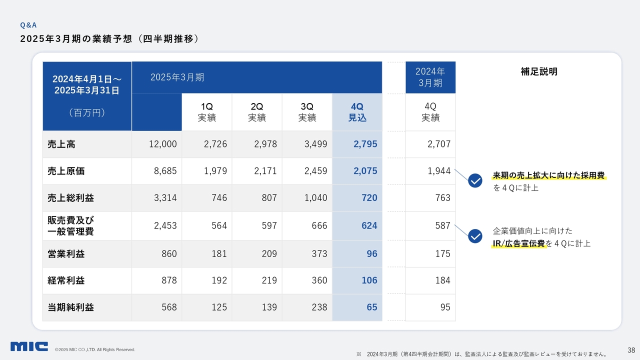 そして、改善された企業体質を維持しながら、来期を迎えたいと思っています。ぜひ引き続き、MICを応援していただけると幸いです。