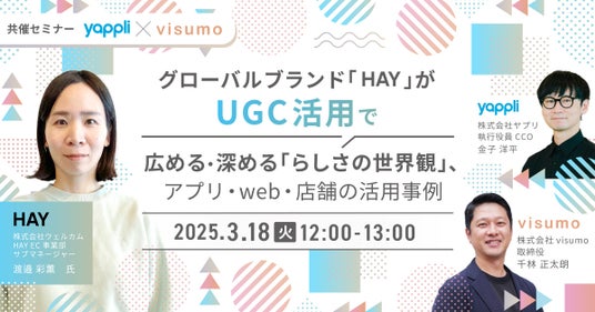 本セミナーでは、株式会社ウェルカム HAY EC 事業部 サブマネージャー 渡邉 彩薫 氏をゲストに、ビジュアルマーケティングプラットフォームを提供する「visumo」とアプリプラットフォームを提供する「ヤプリ」が共催セミナーを開催します。