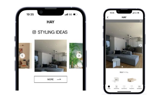 HAY公式アプリでは、Instagramに投稿された「#HAYのある暮らし」のハッシュタグ付きコンテンツを収集し、ブランドの世界観に合ったユーザーのスタイリングアイデアを表示しています。購入を検討していないユーザーにも気軽なアプリ回遊を促すことができ、ブランドとの接点を自然に増やすことが可能となります。