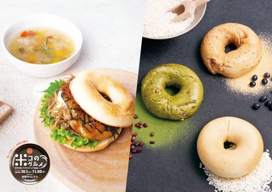 株式会社JFLAホールディングス(本社:東京都中央区、代表取締役社長:檜垣周作)の子会社である株式会社アルテゴ(本社:東京都中央区、代表取締役社長:檜垣周作)が運営する「BAGEL & BAGEL」は、「米・米粉消費拡大推進プロジェクト」の一環として、2024年11月1日(金)から米粉を使ったグルメフェアに期間限定で参画します。
