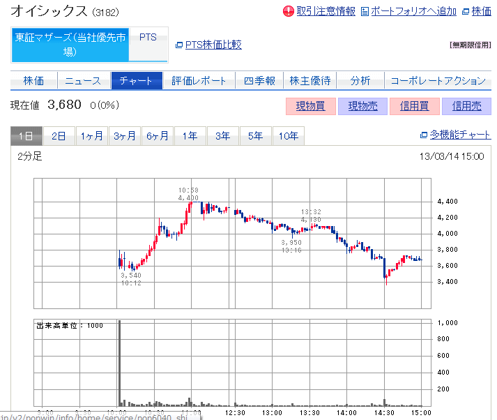 ①3月12日上場 マザーズ 証券コード:3671 ソフトマックス 上場来安値 3005円 7月12日現在 4360円 公募価格 1300円 → 初値 5510円 ②3月13日上場 マザーズ 証券コード:3182 オイシックス 上場来安値 2867円 7月12日現在 4220円 公募価格 1200円 → 初値 3700円 ③3月14日上場 マザーズ 証券コード:3672 オルトプラス 上場来... ...続きを読む
