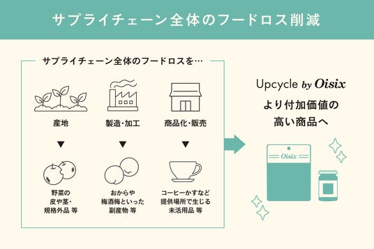 生産現場から食材がお客様に届くまで一気通貫で「食」に向き合うOisixだからこそ生まれた「Upcycle by Oisix」は2021年7月8日よりサービスを開始。これまで見栄えや食感の悪さなどから捨てられていた食材を、より環境負荷が低く、新たな価値を加えた自社オリジナルのアップサイクル商品として開発、おいしく驚きのある新たな食材を生み出しています。