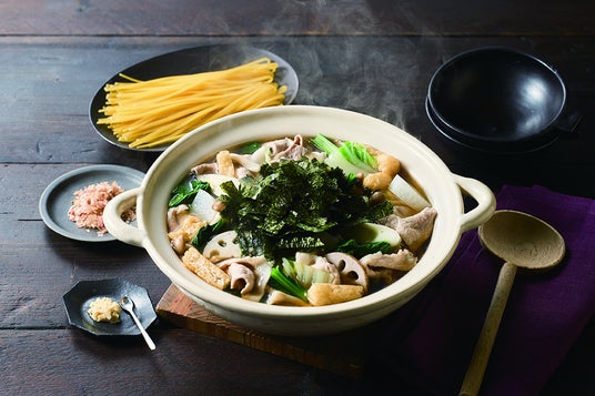 ▲「[Kit]海苔の旨みと香り味わう!鰹だし寄せ鍋」は、具材と〆の和風パスタのユニークさが好評