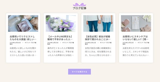 また、出産祝いや結婚祝いなど、人生のギフトシーンにおけるマナーや、実際に贈ったものを調査したブログ記事も用意しています。