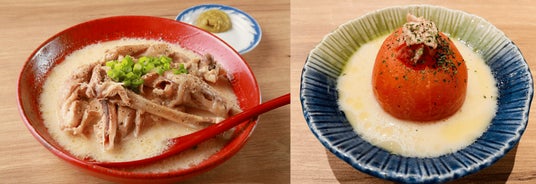 (左) 名物 「骨付き鶏」 1,078円(税込) / (右)「トマト」 506円(税込)