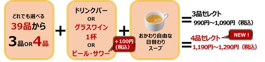 『もっと食べたい』との声にお応えし、「メイン4品セレクト」のコースを新設。