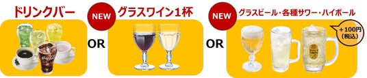 グラスワイン・各種サワー・グラスビール・角ハイボールが楽しめる!