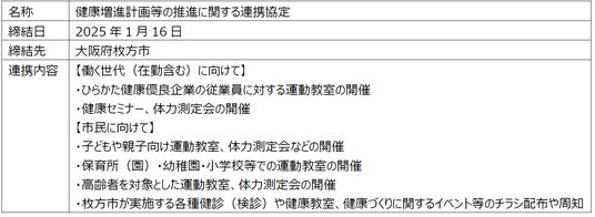 1. 大阪府枚方市との「健康増進計画等の推進に関する連携協定」の締結について