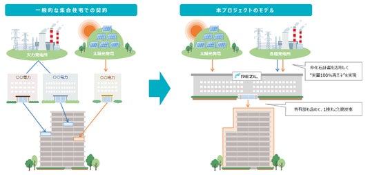 一般的に、住宅専有部の電気需給契約は、入居者と電力会社の直接契約となるため、物件の所有者が専有部の消費電力量を把握することや、再エネに切り替えることには、大きなハードルがあります。当社では、この住宅専有部の消費電力の把握・再エネ化を重要な課題として認識し、レジル株式会社と、同社の提供する一括受電サービス(以下「本サービス」)を活用した解決策を検討してまいりました。