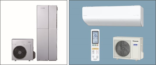 【ハイブリット給湯器「ECO ONE」(写真左)とエアコン「エオリア HXシリーズ」(写真右)】