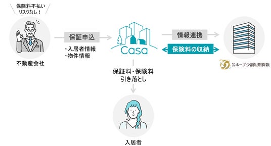 不動産 DX を推進する株式会社アンビション DX ホールディングス(証券コード「3300」、本社:東京都渋谷区、代表取締役社長 清水 剛、以下「当社」)の、インシュアテックを推進する子会社、株式会社ホープ少額短期保険(本社:東京都渋谷区、代表取締役社長 福本 良平、以下「ホープ」)は、株式会社Casa(本社:東京都新宿区、代表取締役社長:宮地 正剛)との業務提携により家賃保証の申込情報の連携、家財保険料の収納の取扱いを、2024年10月1日より開始することをお知らせいたします。