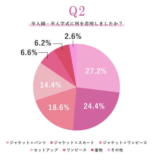 「ジャケット×パンツ」が第1位最も多かったのは「ジャケット×パンツ」派。続いて「ジャケット×スカート」という結果に。またセットアップの需要も多く「ワンピース」や「着物」は少数派ということがわかりました。