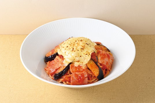 香ばしく炙ってとろけたチーズをたっぷりとのせることで、外食でしか味わえないワンランク上のトマトソースパスタが誕生しました。