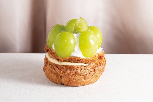 店内で焼きあげたサクサクのシュー生地にたっぷりのクリームを入れて、旬のフルーツを飾りつけた人気の「ガトー・ド・シュー」。2024年9月14日(土)より、「ガトー・ド・シュー シャインマスカット」を3店舗限定で販売いたします。