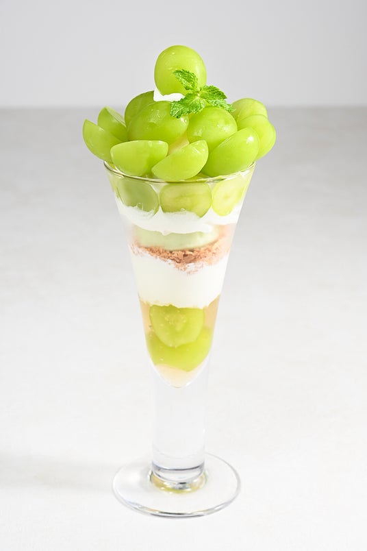 厳選したシャインマスカットを10粒たっぷりと使用した贅沢パフェ。
