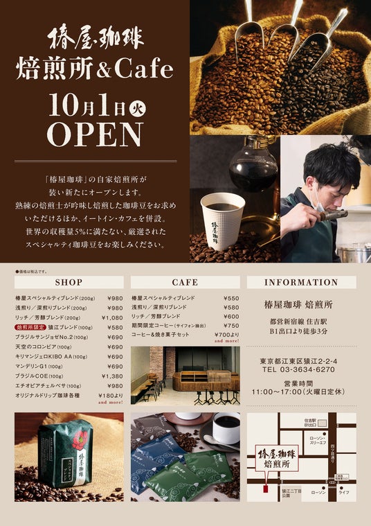 東和フードサービス株式会社(本社:東京都港区/代表取締役社長CEO:岸野 誠人)はスペシャルティコーヒーへのこだわりを発信する「椿屋珈琲 焙煎所」を2024年10月1日(火)にオープンいたします。