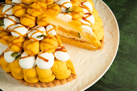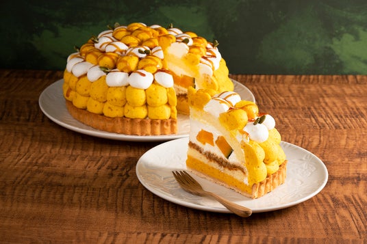 北海道産「えびすかぼちゃ」のフィリングをタルトに詰めて、ほくほくのかぼちゃをサンド。かぼちゃの優しい甘みに、香ばしい大人のカラメルソースをアクセントで添えました。