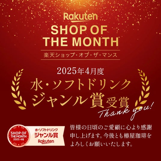 楽天市場に出店しているECサイト「自家焙煎 銀座椿屋珈琲」が「楽天ショップ・オブ・ザ・マンス」にて、2025年4月度の「水・ソフトドリンク ジャンル賞」を受賞しました。