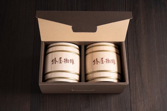 看板商品の「椿屋スペシャルティブレンド」を木樽にお詰めしたオンラインショップ限定ギフト。