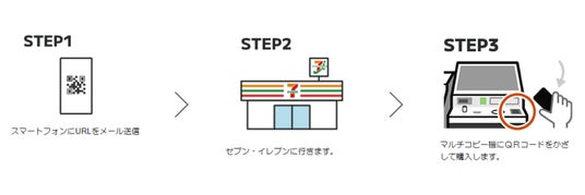 3.セブン‐イレブン店内のマルチコピー機の読み取り口に、QRコードを表示したスマートフォンをかざしてください。内容をご確認の上、ご購入ください。