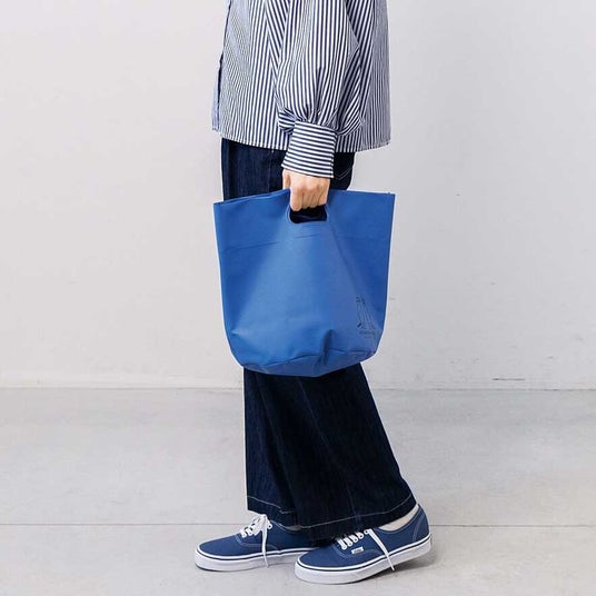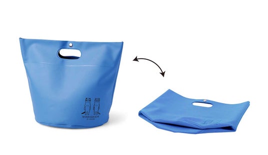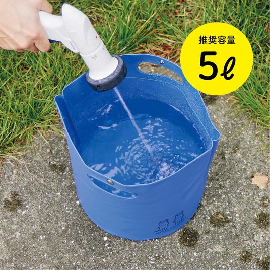 日本製のPVC素材でできた折りたためるバケツ。約5Lの水が入り、持ち手付きなので持ち運びしやすいのもポイント。ふだんはランドリーバッグや、お部屋のちょっとした収納からゴミ箱まで、マルチに活躍します。
