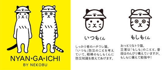 「万が一のことを猫と一緒に考えよう」がテーマの猫部の防災グッズブランドです。「いつも使える、もしもも役立つ」をテーマに、ふだんの暮らしから使える防災グッズを展開しています。しっかり者のハチワレ猫「いつも」くんと、少しおっとりなトラ猫「もしも」くんのデザインが目印。