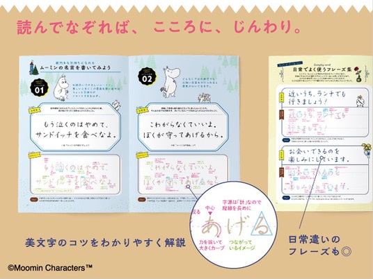 フェリシモが展開する「ミニツク(R)」は、新感覚のなぞり書き練習帳「名言で楽しむムーミン谷の物語 美文字なぞり書きプログラム」のウェブ販売を3月17日より開始しています。ムーミン小説から、キャラクターたちの心に響く名言をピックアップしていて、なぞり書きを楽しみながら美しい文字を書くコツが学べる練習帳になっています。ここでしか手に入らないフェリシモのオリジナルのセットです。