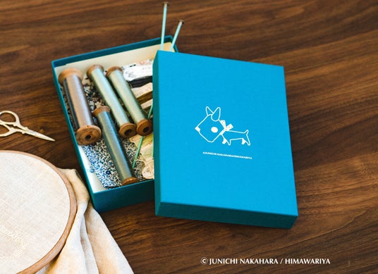 1回分のキットに、布や糸、リボンや面ファスナーなどの材料セットと実物大型紙、作り方説明書が含まれています。図案は一部印刷済です。キットは毎回、中原淳一さんのデザイン画を箔押ししたスペシャルBOXに入って届きます。BOXは作りかけや材料、完成した作品をコンパクトに収納可能です。
