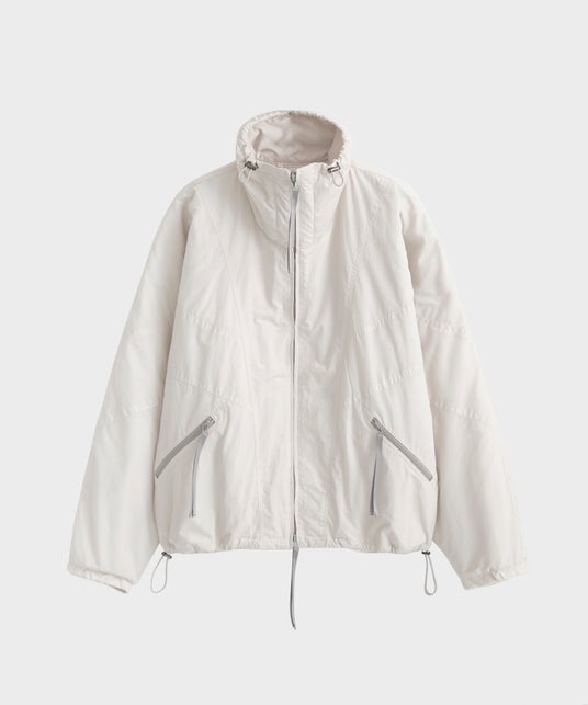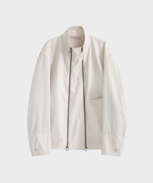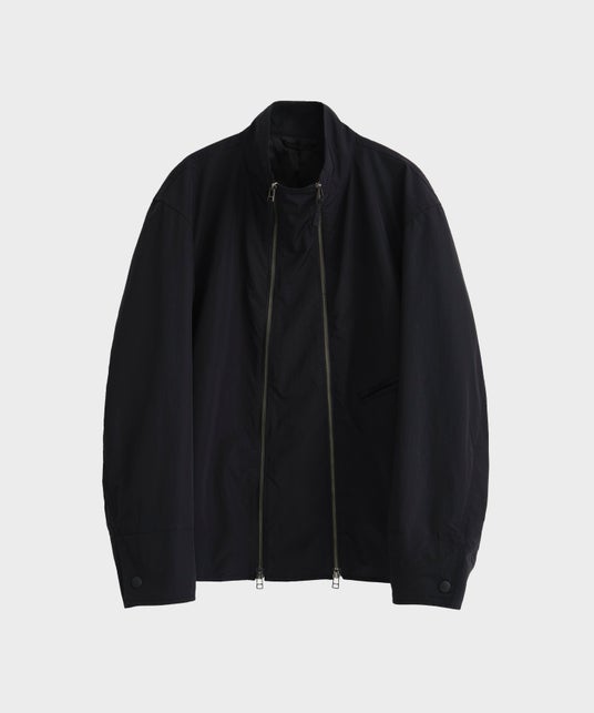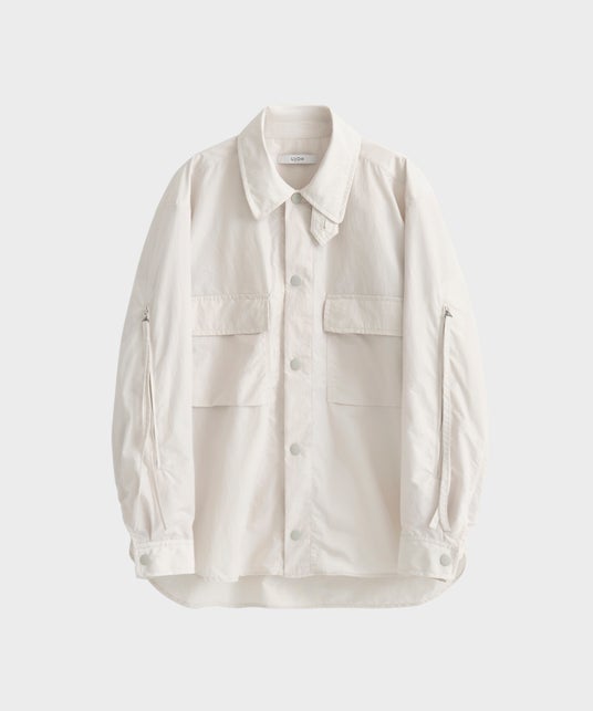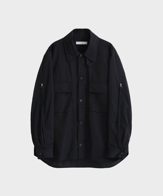 インラインのジャケットのディティールにある袖のファスナーをシャツブルゾンに採用。ナイロン素材でスポーティーに。