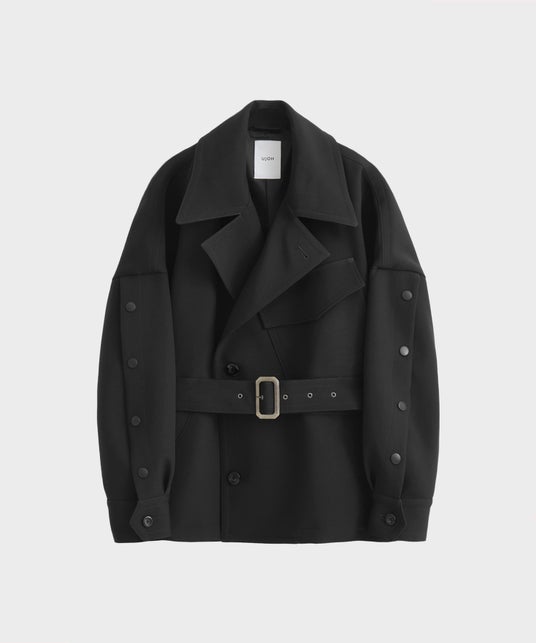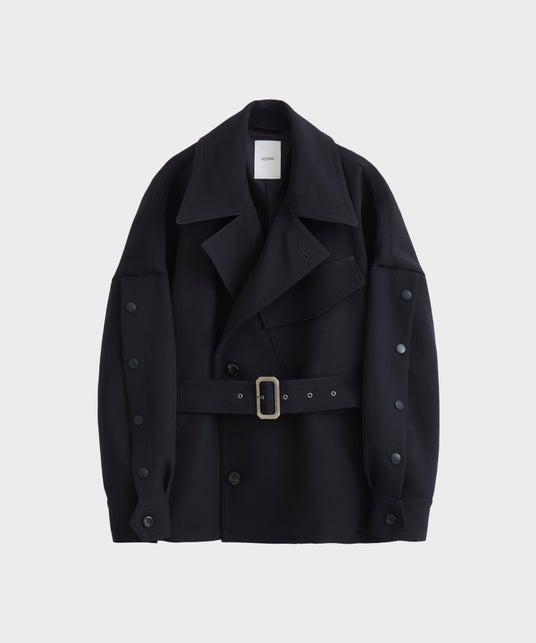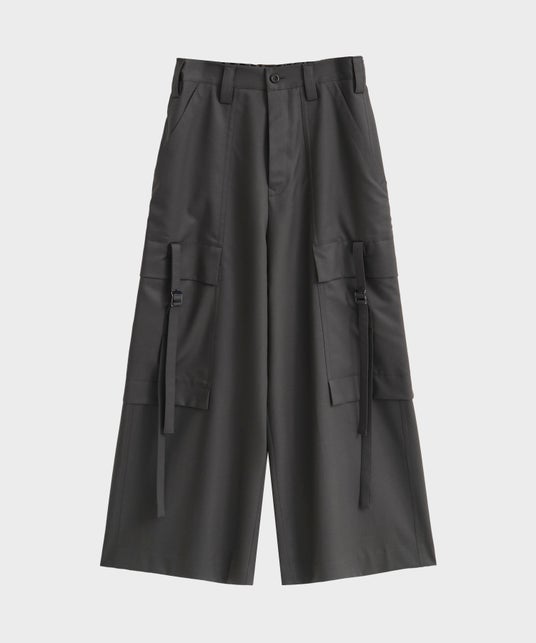 UJOHの特徴的なベルトのディテールを取り入れ、セットのワイドなパンツに合わせやすいような丈感にアップデートした新型。