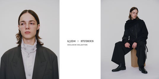 また「 UJOH 」デザイナー西崎氏によりディレクションしたコラボレーションLOOKもSTUDIOUS公式通販にて公開しております。取り扱いはSTUDIOUS メンズの「 UJOH 」取り扱い店舗全店舗での展開となります。