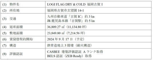 霞ヶ関キャピタル株式会社(本社:東京都千代田区、代表取締役:河本幸士郎、以下「当社」)は、当社が開発用地のソーシングおよび企画立案をおこない、アセットマネジメント業務を受託している福岡県古賀市の物流施設『LOGI FLAG DRY & COLD 福岡古賀I』におきまして、株式会社ファクテム(本社:福岡県北九州市、代表取締役:川越健二)がテナントとして決定し、本施設が満床となりましたことをお知らせいたします。