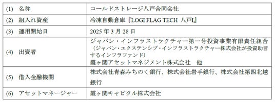 冷凍自動倉庫『LOGI FLAG TECH 八戸I』プロジェクトの運用フェーズ移行およびアセットマネジメント契約締結に関するお知らせ