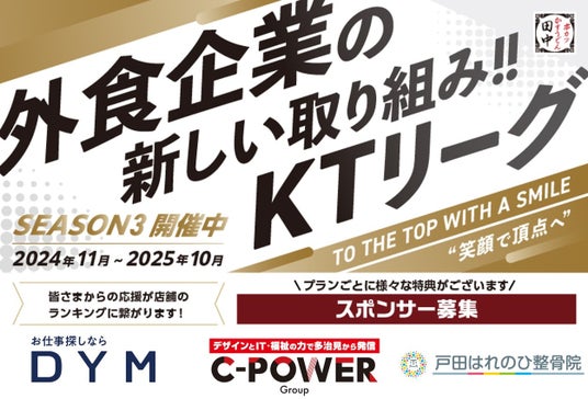株式会社串カツ田中ホールディングス(本社:東京都品川区東五反田、代表取締役社長:坂本 壽男)が展開している串カツ田中は、KTリーグをとおして、多くのスポンサー企業様にご支援をいただいております。このたび、スポンサー契約を締結し、2025年2月より各店をご支援いただけることになった企業様3社(うち2社はご契約更新)をご紹介いたします。