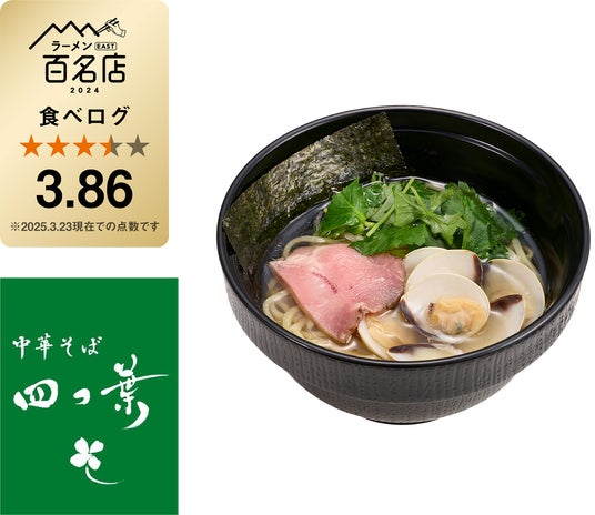 「スシロー×食べログ」全国名店監修シリーズ!食べログ点数3.86、「食べログ ラーメン EAST 百名店」選出!埼玉の人気ラーメン店“中華そば 四つ葉”監修「はまぐり塩ラーメン」が期間限定で登場!