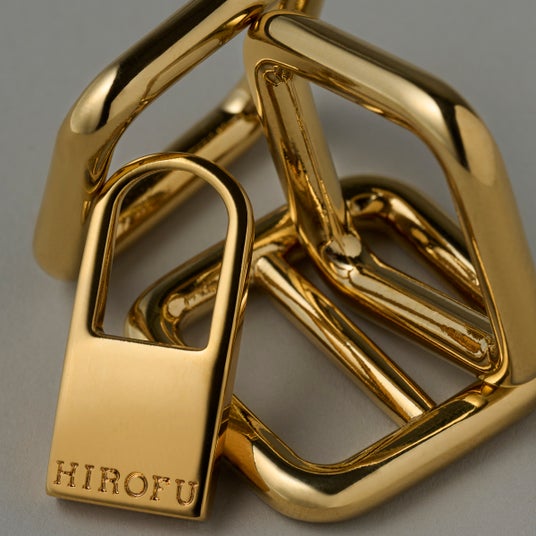 くたっと心地よくたわむフォルムや、思わず触れたくなるシルキーな手触り。新素材×ゴールドメタルが織りなす贅沢な佇まいはHIROFUならでは。