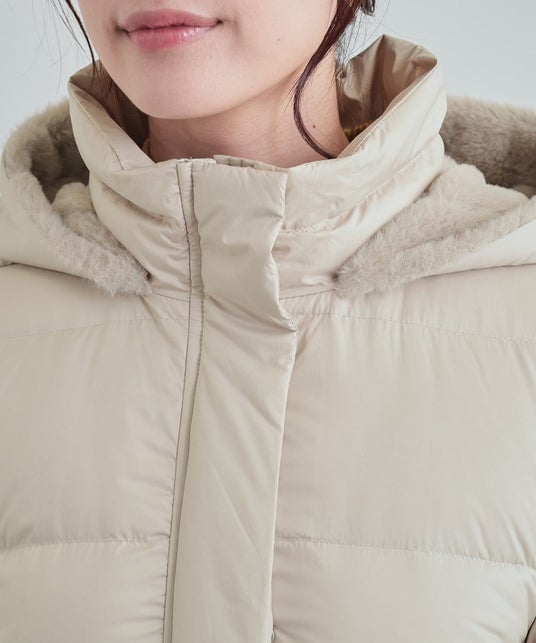 ■デザイン:フード裏にフェイクファーをあしらった、上品な見え感のダウンジャケット。