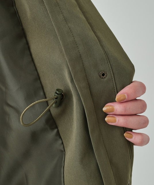ジャケットの内側にあるドローコードを絞れば、ウエスト部分はお好みのシルエットにアレンジ可能。スタイリングに合わせて異なる雰囲気を楽しめます。
