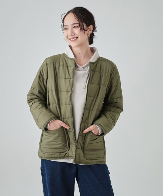 ≪2WAY≫ノーカラーのキルティングジャケット。カジュアルにもキレイ目にも使いやすい