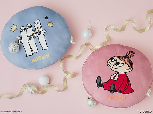 両面異なるデザインが魅力のラウンド型クッション。片面にはリトルミイやニョロニョロのキャラクターが描かれ、もう片面には楽しい総柄デザインが施されています。フカフカの質感が気持ちよくお部屋のインテリアにぴったり。