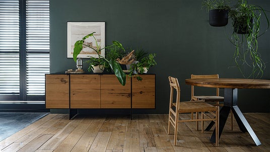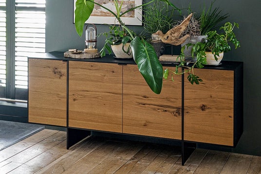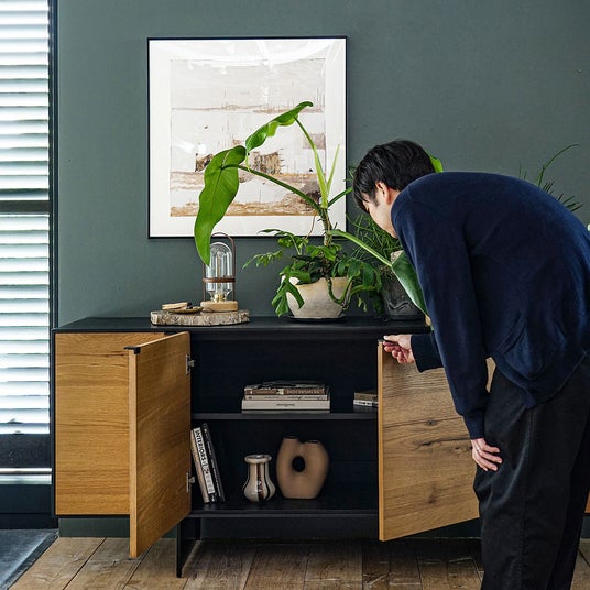 4つの開き戸がついたサイドボードは、中が2段で書籍や食器などをたっぷりと収納できます。