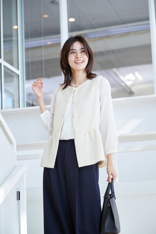 トレンド感のあるツイードベストやフラワージャカード素材のセットアップから、ハレの日らしいジャケットやワンピースまで幅広いアイテムをラインナップ。