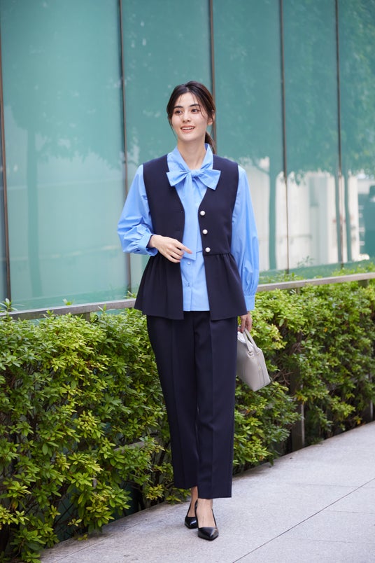 ◆パール調ボタン付きペプラムジレ