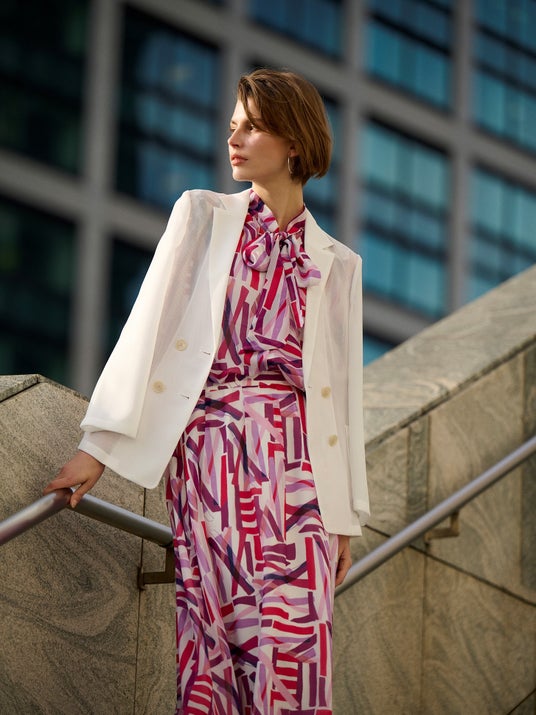 太陽や夏を感じさせるエネルギッシュで都会的なムードを背景に、ストライプやカラーブロック、アーティスティックで華やかなプリントが印象的なコレクションは、内面から滲み出る「艶感」を持つSENSUALITYな女性に向けて、しなやかさでリラックスしたスタイルを表現しています。