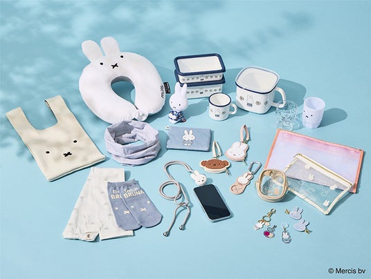 初夏にぴったりのブルードレスのデザインをあしらった数量限定アイテムや、ネックピロー、アームカバーをはじめとする、初夏のおでかけにおすすめのミッフィーグッズが新登場。